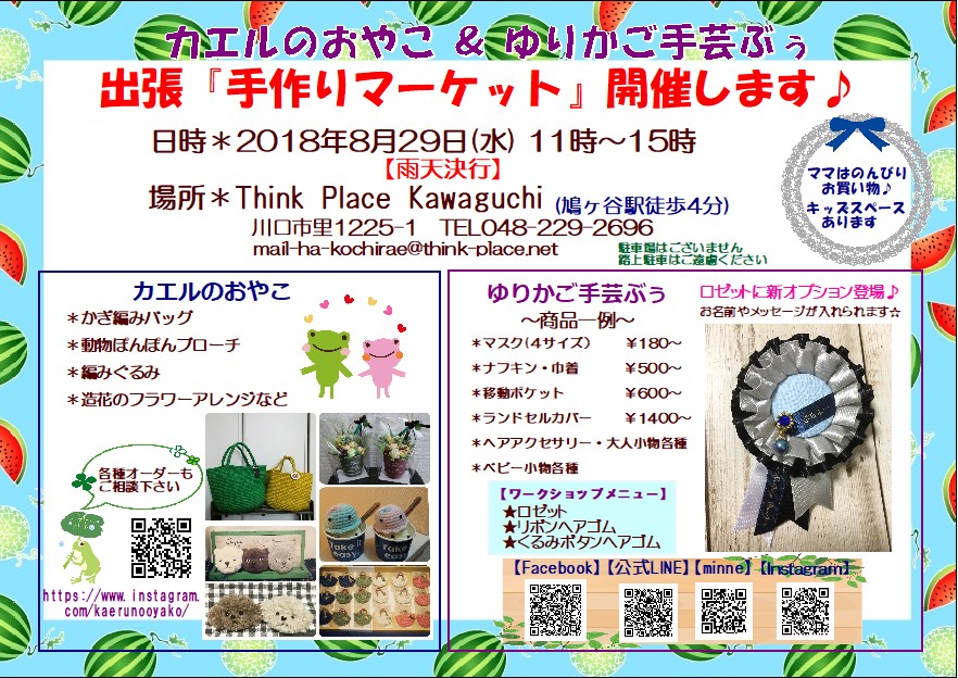 鳩ケ谷で大人気のゆりかご手芸ぶぅさんの出張「手作りマーケット」 を開催します!
