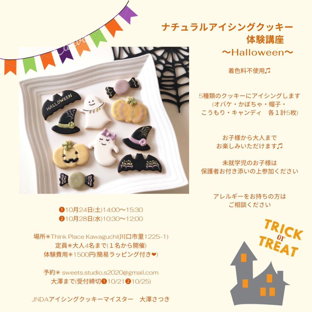 大澤さつきさんによる~❤︎ハロウィン❤︎ ナチュラルアイシングクッキー体験講座のご案内~