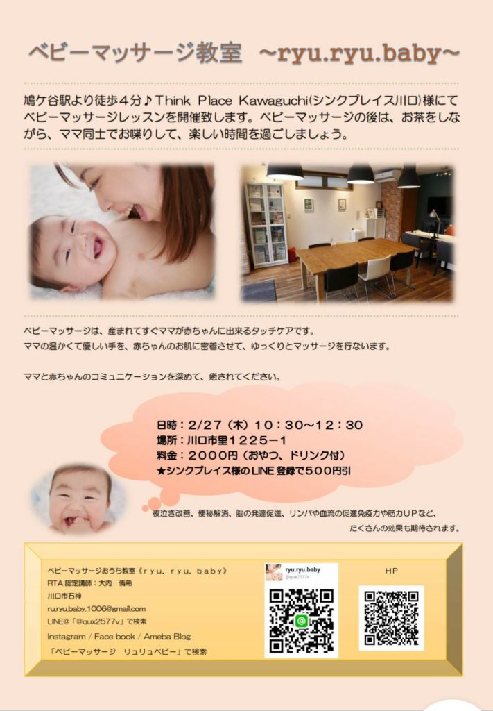 ~ryu.ryu.baby~大内侑希さんによる【ベビーマッサージワークショップ 】