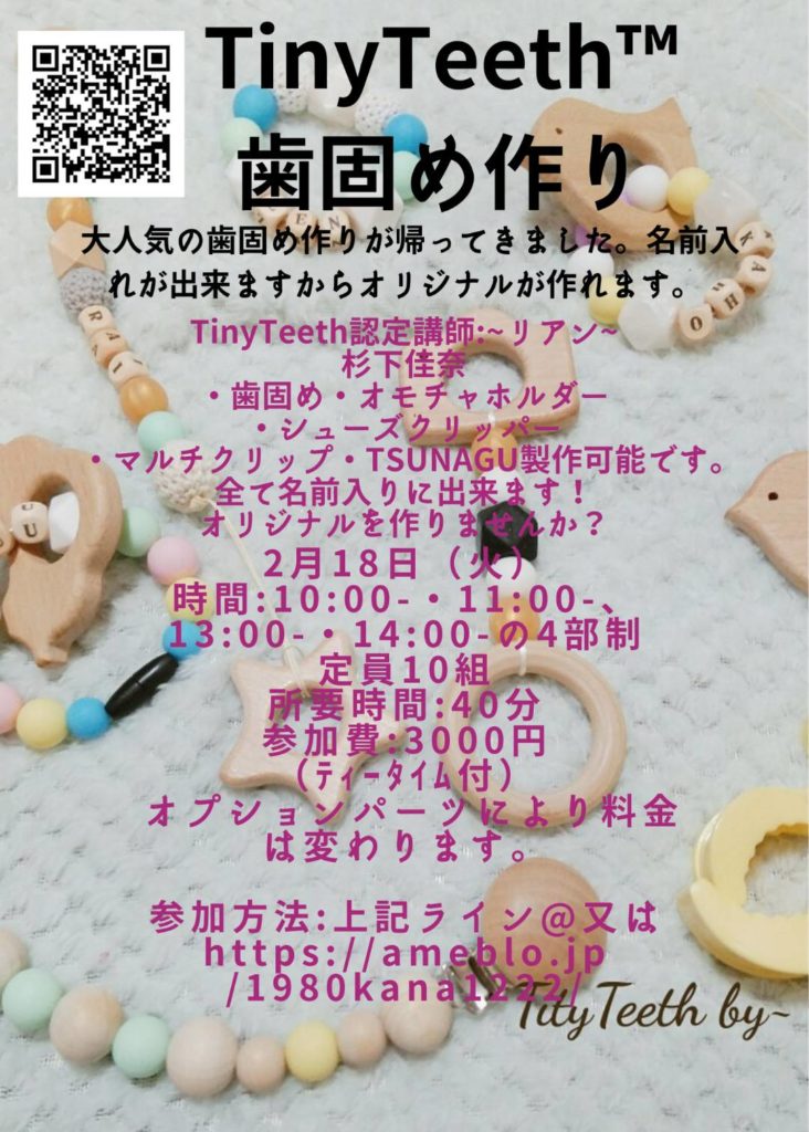 TinyTeeth認定講師~リアン~杉下 佳奈さんによる「歯固めアイテム作りワークショップ」です![]()
