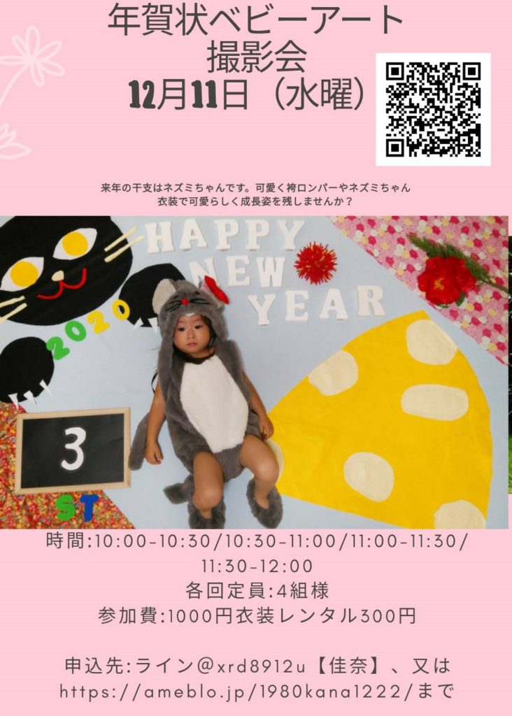 来年の干支はネズミちゃんです。可愛く袴ロンパーやネズミちゃん衣装で可愛らしく成長姿を残しませんか?年賀状にも最適です。